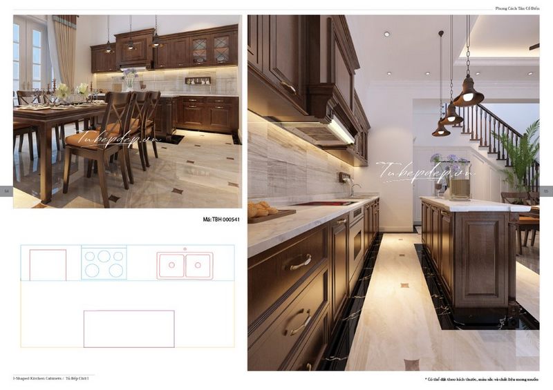 Thiết kế nội thất phòng bếp gỗ tự nhiên cao cấp theo phong cách tân cổ điển sang trọng cho nhà chung cư